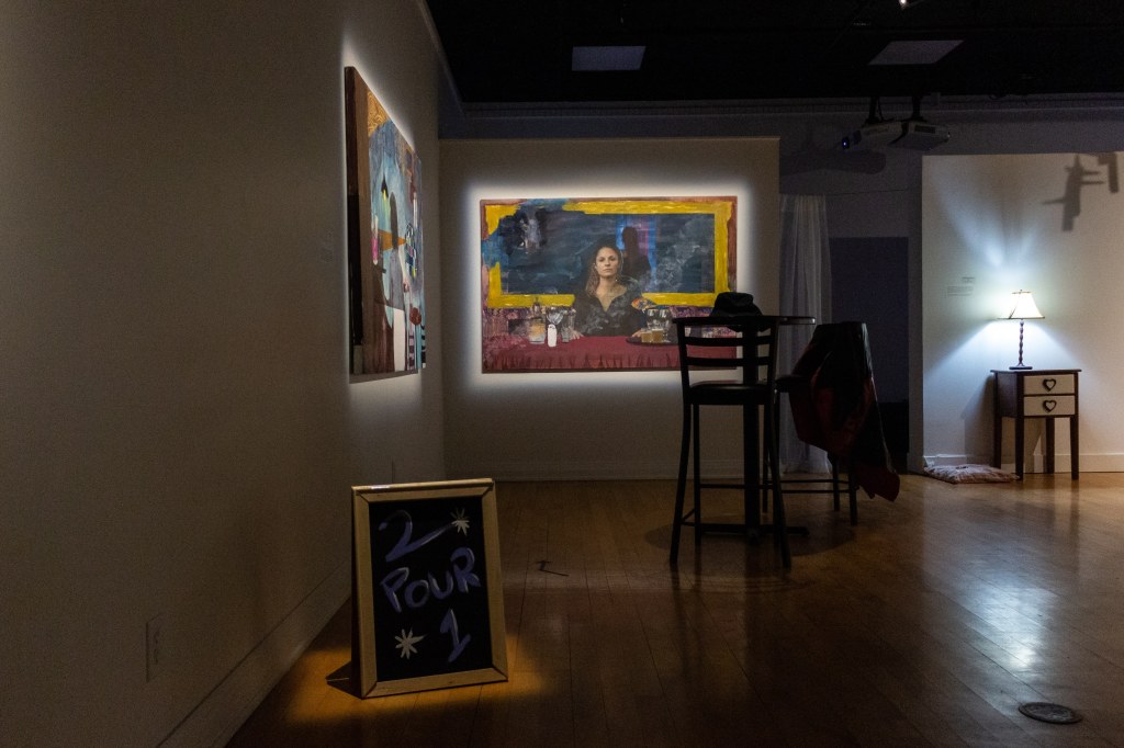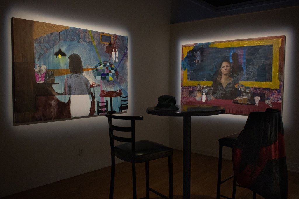Prenant comme sujet la documentation de leurs performances, le collectif exploite l’art de la mise en scène en recomposant le milieu de la restauration dans une série de toiles et d’installations. Par la présence de multiples objets faisant références à l’univers des bars et des restaurants, ainsi que dans la répétition du geste attribué aux tâches de serveur·euses, le thème du travail alimentaire s’impose comme fil directeur dans ses réalisations.